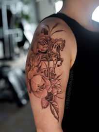 These are some of the floral tattoos I’ve created, each designed with intention to flow seamlessly with the body. I love capturing the organic movement of flowers and leaves, allowing the curves and contours of the form to guide the placement. My goal is to enhance the natural shape of the body, making the tattoo feel as though it belongs there—graceful, timeless, and in harmony with the skin.